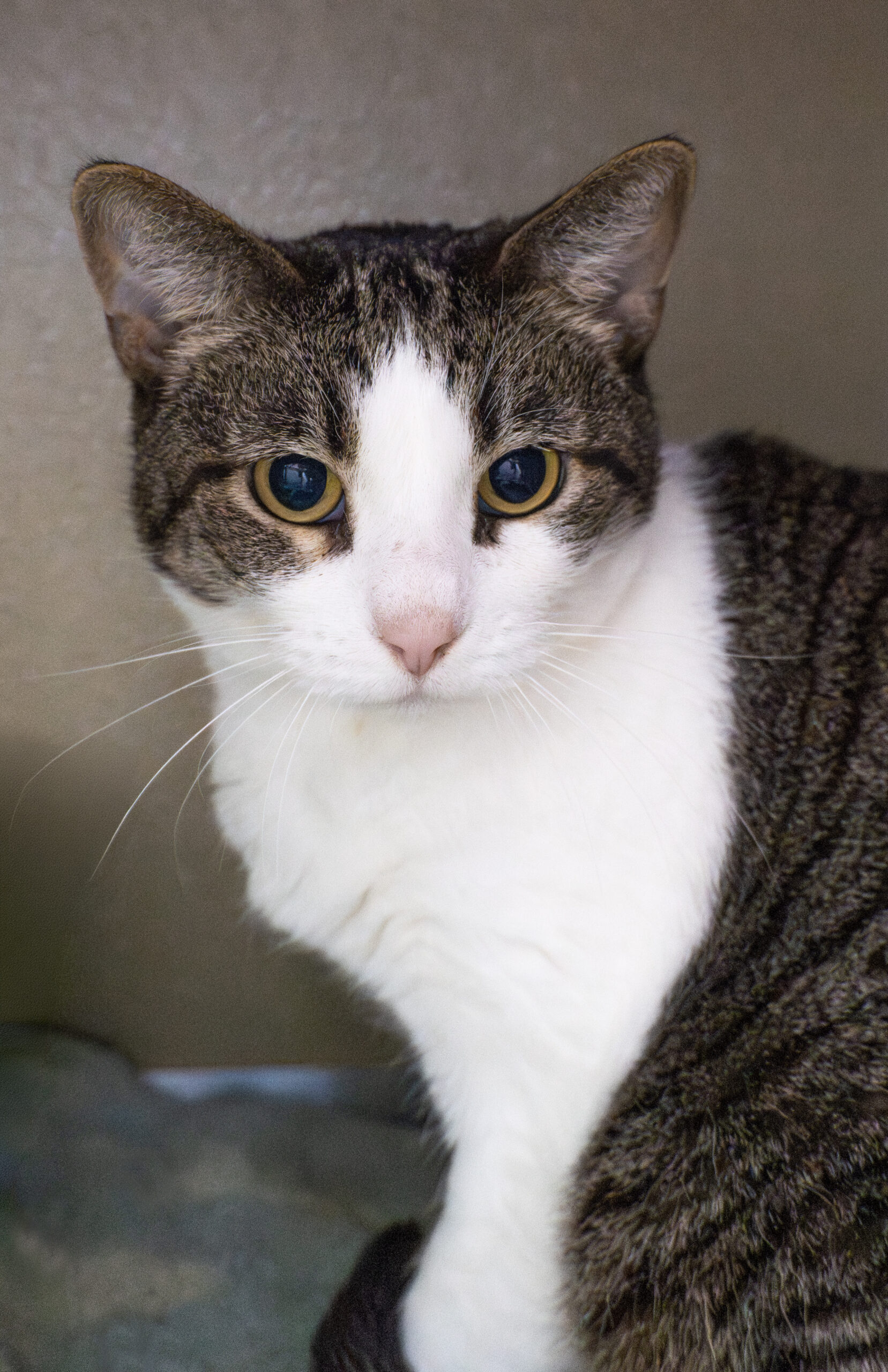 Domestic Short Hair – White & Brown Tabby