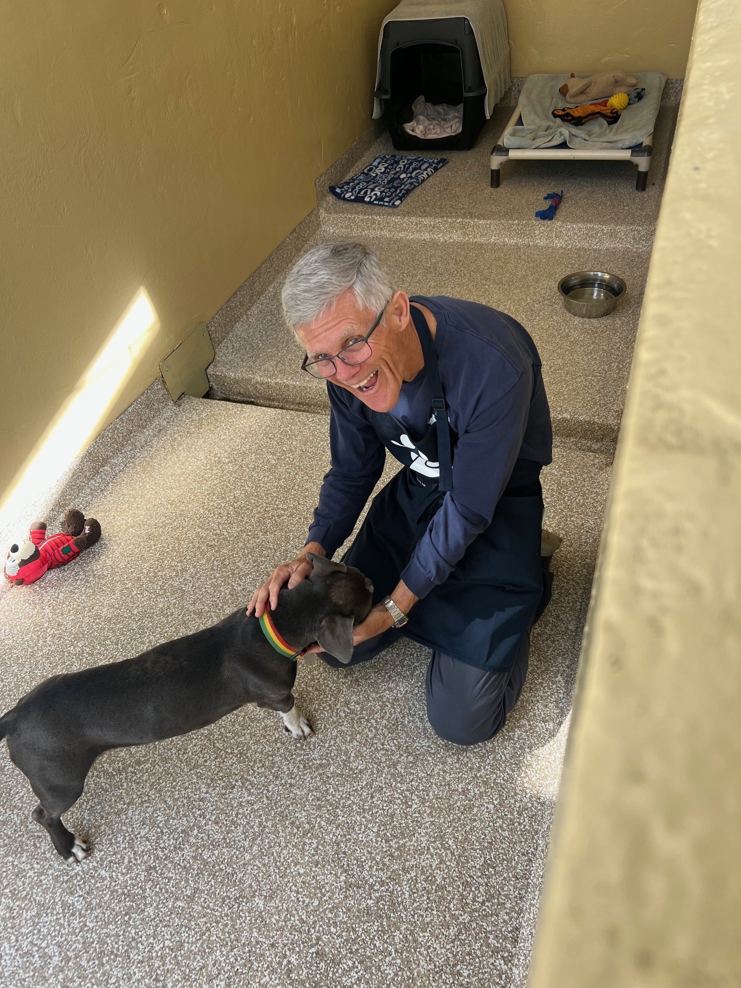 Over the past two years I have been trained to be a dog companion and a dog walker. When the new Medical Center opened, I volunteered to help assist them with laundry, recovery cage cleaning, surgical table + equipment cleaning and sterilization. Basically, anything they need to fire up so that vet assistants can devote their time to medical tasks. I also do some painting when needed.